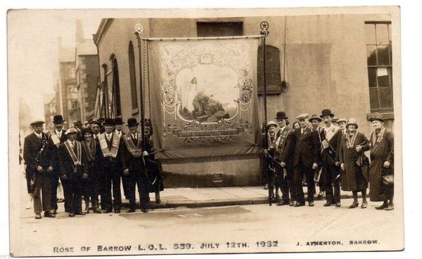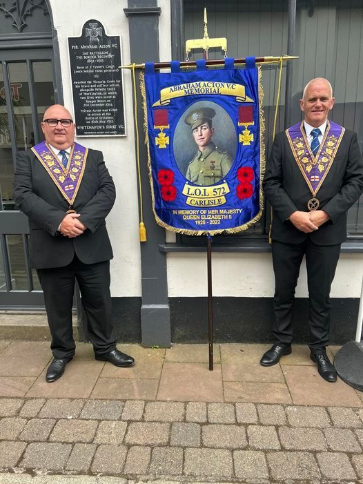 There were many Lodges in each town consisting of male, female and juvenile lodges and the towns had two or three Orange Halls or meeting rooms, some very prominent piers were also members, such as Lord Lonsdale (Hugh Cecil Lowther) Victoria Cross winner Abraham Acton who were membes of LOL171 Whitehaven, and many others from other Male and Female Lodges such as LOL522 Workington True Blues, Crimson Banner LOL403 Harrington, Furness True Blues LOL905 and many more to mention who would sadly not return from WW1 and WW2 and would also add to the decline in membership which seen in recent years the folding of these lodges.